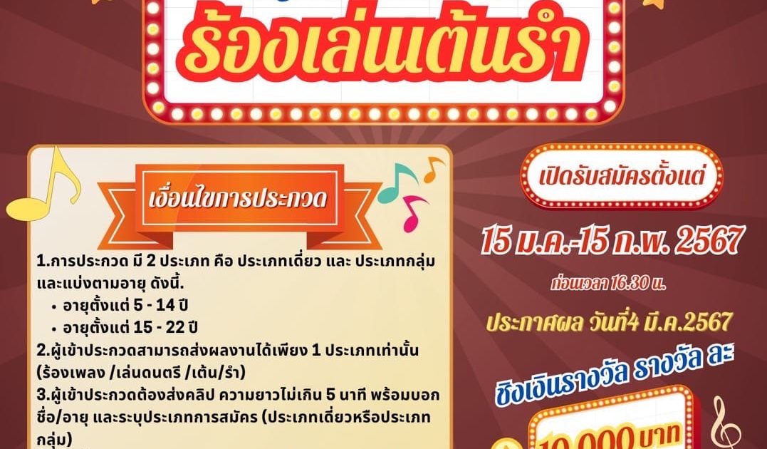 - ส่งคลิปวิดีโอการแสดง ร้องเพลง หรือเล่นดนตรี หรือเต้น หรือรำ โดยมีความยาวคลิปไม่เกิน 5 นาที