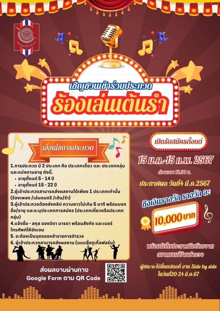 สมาคมแม่บ้านตำรวจ มีหลักเกณฑ์การประกวด “ร้อง เล่น เต้น รำ” ประจำปี 2567 ดังนี้