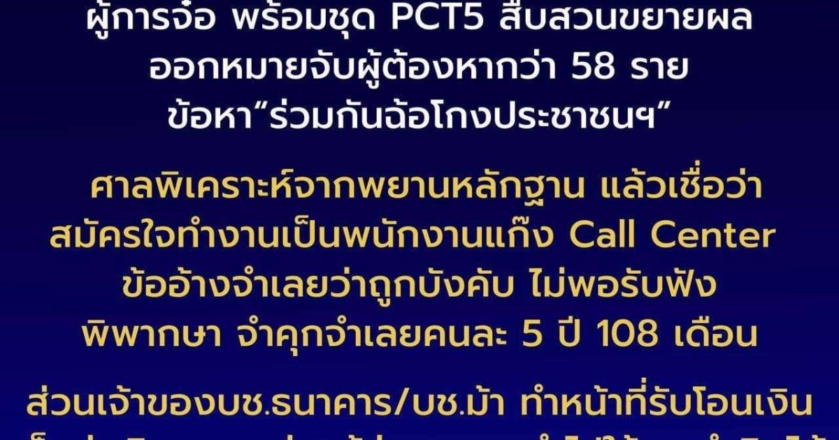 สถานีตำรวจภูธรหนองหญ้าปล้อง จว.เลย ประชาสัมพันธ์แก็งคอลเซ็นเตอร์