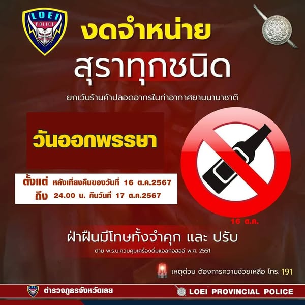 วันนี้ ( 16 ต.ค. 67 ) เวลา 13.00 น. โดยการอำนวยการของ พ.ต.อ.ตรีกฤช จงวิไล ผกก.สภ.หนองหญ้าปล้อง พ.ต.ท.สุชาติ สุทธิภาพ รอง ผกก.ป.สภฯ พ.ต.ท.ทินกร เพ็ญศิริวรรณกุล สวป.สภฯ มอบหมายให้ ร.ต.อ.จักรพล คนเพียรรอง สวป.สภ.หนองหญ้าปล้อง ปฏิบัติหน้าที่ร้อยเวร 2-0 /สายตรวจรถยนต์ ประชาสัมพันธ์และกำชับให้กับผู้ประกอบการฯ ห้ามจำหน่ายสุราในวันสำคัญทางพระพุทธศาสนา วันออกพรรษา ตาม พ.ร.บ.ควบคุมเครื่องดื่มแอลกอฮอล์ พ.ศ.2551 อย่างเข้มงวด โดยห้ามจำหน่ายสุราในเวลาห้าม ห้ามไม่ให้ขายเครื่องดื่มแอลกอฮอล์ให้บุคคลที่มีอายุต่ำกว่า 20 ปี และบุคคลที่มีอาการมึนเมาจนครองสติไม่ได้ ห้ามบริโภคเครื่องดื่มแอลกอฮอล์บนทางในขณะขับขี่หรือในขณะโดยสารอยู่ในรถหรือบนรถ รวมทั้งประชาสัมพันธ์แจ้งเตือนผู้ประกอบการ ร้านค้าทุกประเภท ทั้งร้านค้าในชุมชน ร้านสะดวกซื้อ ห้างสรรพสินค้า ร้านอาหารที่จำหน่ายเครื่องดื่มแอลกอฮอล์ รวมถึงสถานบริการและสถานประกอบการที่เปิดให้บริการในลักษณะที่คล้ายกับสถานบริการ ให้งดจำหน่ายเครื่องดื่มแอลกอฮอล์ทุกชนิด ทั้งชนิดขายส่งและขายปลีกทั่วราชอาณาจักร ตั้งแต่เวลา 00.01 น.ของคืนวันที่ 16 ต.ค.67 จนถึงเวลา 24.00 น.ของคืนวันที่ 17 ต.ค. 67 ยกเว้นการขายเฉพาะร้านค้าปลอดอากรภายในท่าอากาศยานนานาชาติ หากฝ่าฝืนจะมีความผิดตาม พ.ร.บ.ควบคุมเครื่องดื่มแอลกอฮอล์ฯ มาตรา 59 ระวางโทษจำคุกไม่เกิน 6 เดือน หรือปรับไม่เกิน 10,000 บาท หรือทั้งจำทั้งปรับ หากผู้ใดฝ่าฝืนจะดำเนินการตามกฎหมายโดยเคร่งครัด