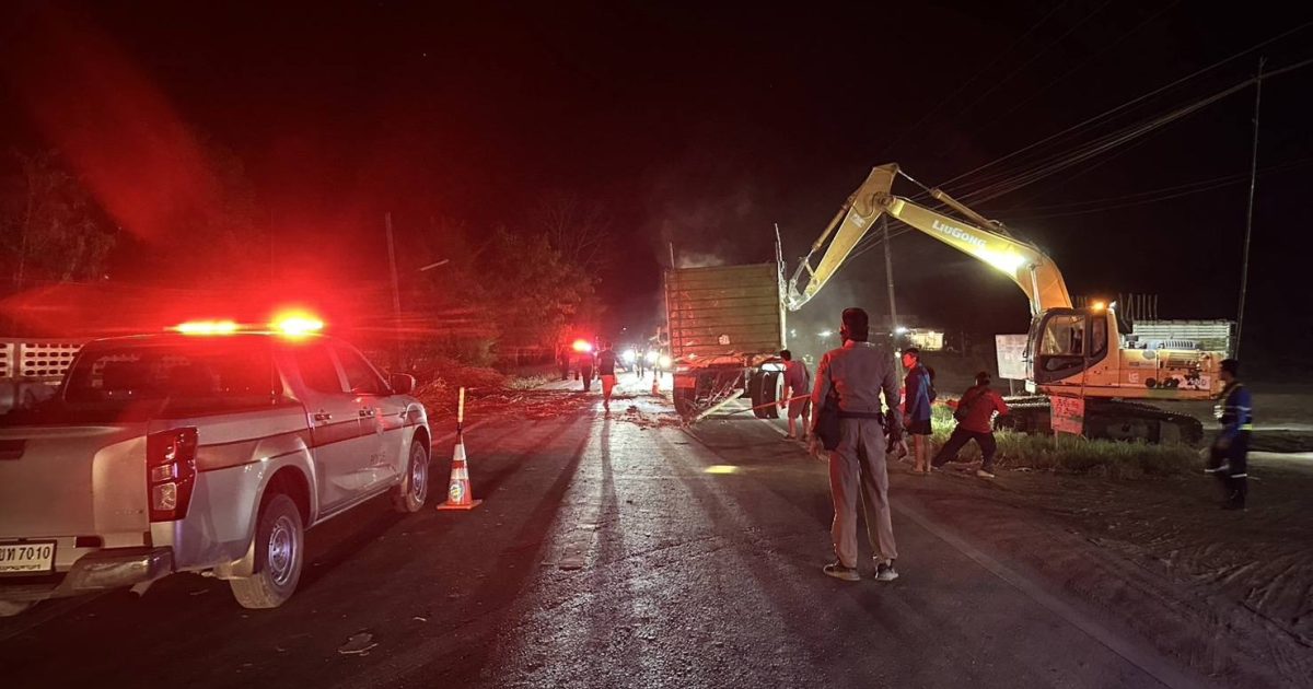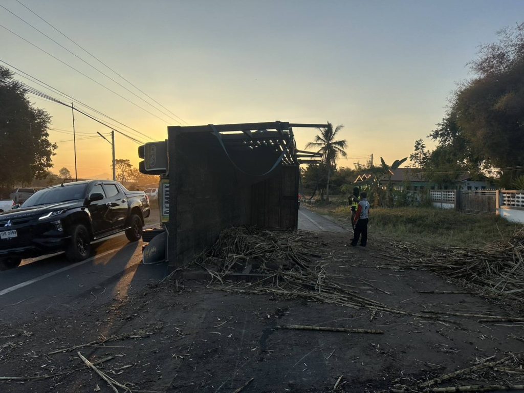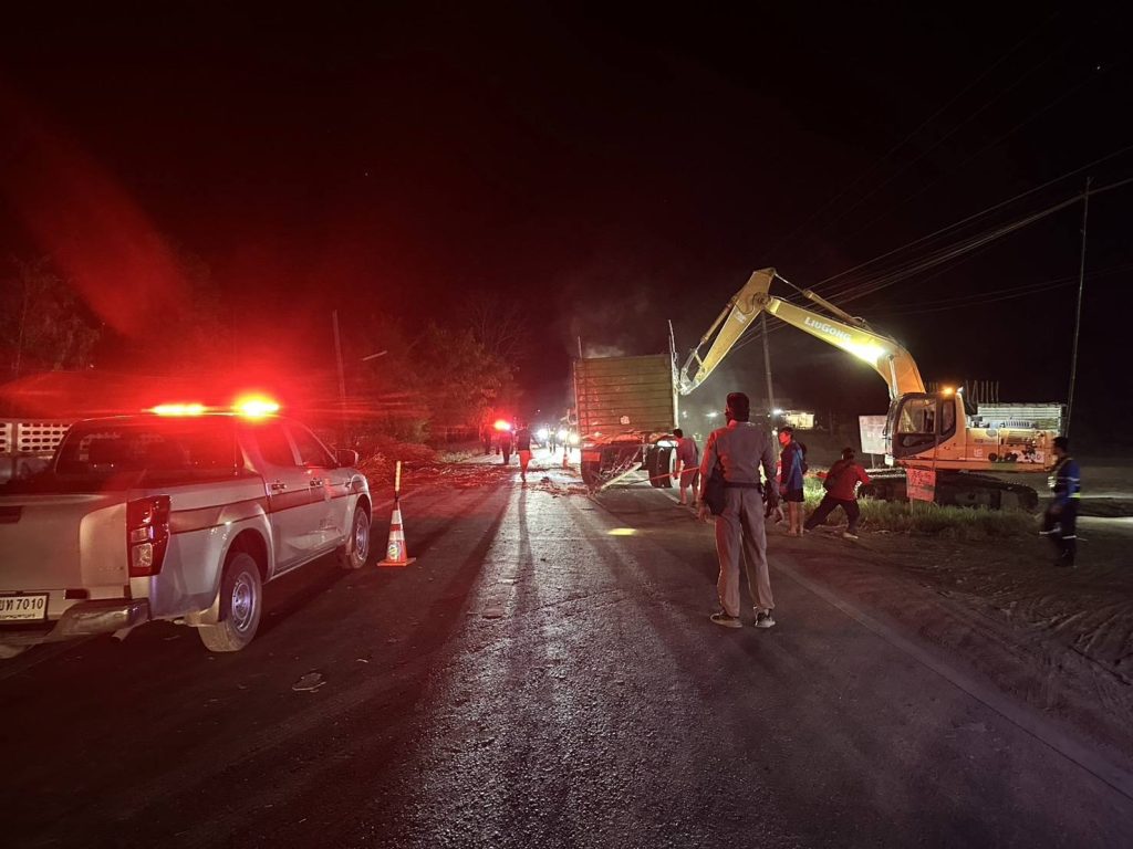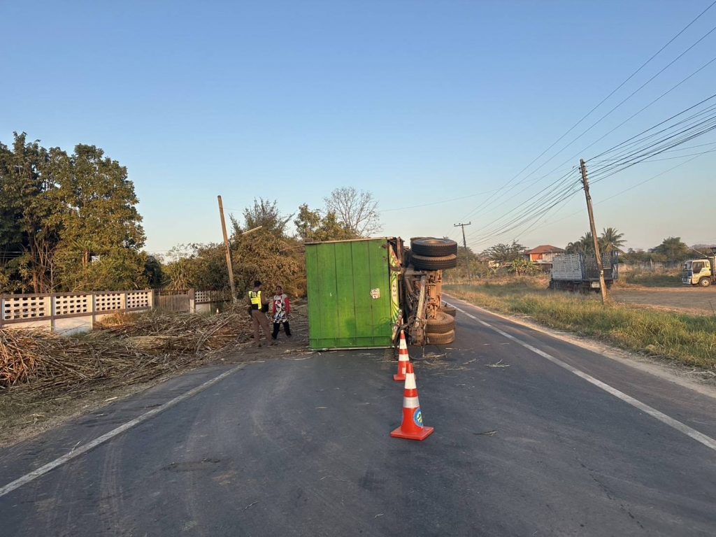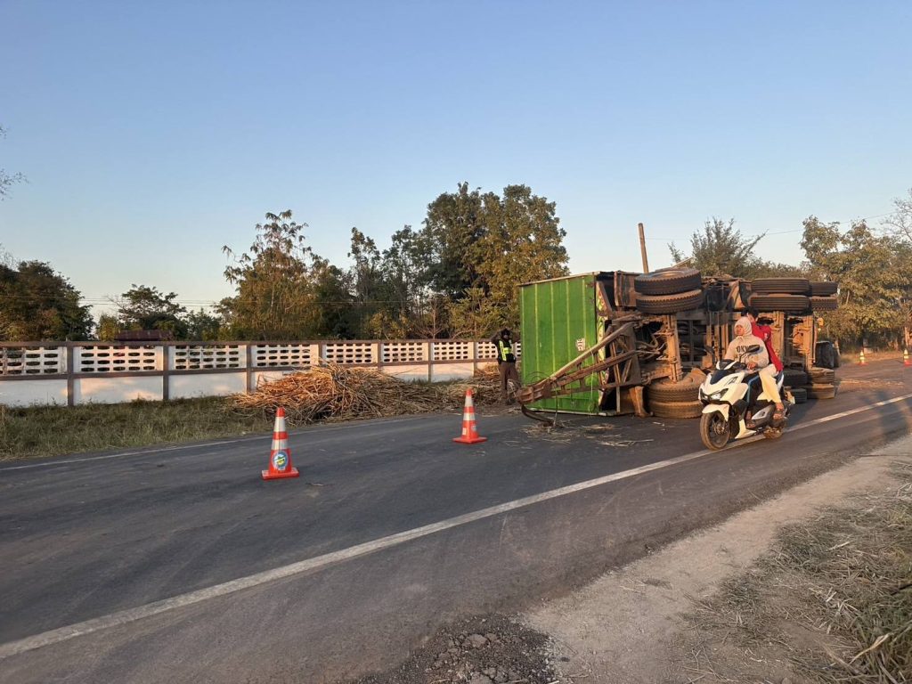 สายตรวจรถยนต์ / จราจร สภ.หนองหญ้าปล้อง อำนวยความสะดวกการจราจรเพื่อกู้ซากลูกพ่วงรถสิบล้อ ถนนบ้านบึงสวรรค์-บ้าน โนนสำราญ ต.หนองหญ้าปล้อง อ.วังสะพุง จ.เลย