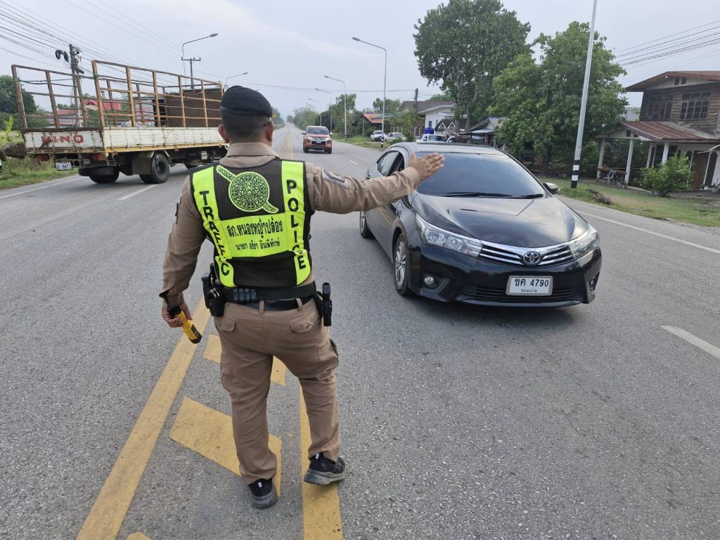 สวป.สภ.ฯ พร้อมด้วย ร้อยเวร 20 สายตรวจและจราจร ตั้งจุดตรวจกวดขันวินัยจราจร 10 ข้อหาหลัก/ตรวจวัดแอลกอฮอล์ในเขตพื้นที่รับผิดชอบ เพื่อป้องกันอุบัติเหตุทางถนน