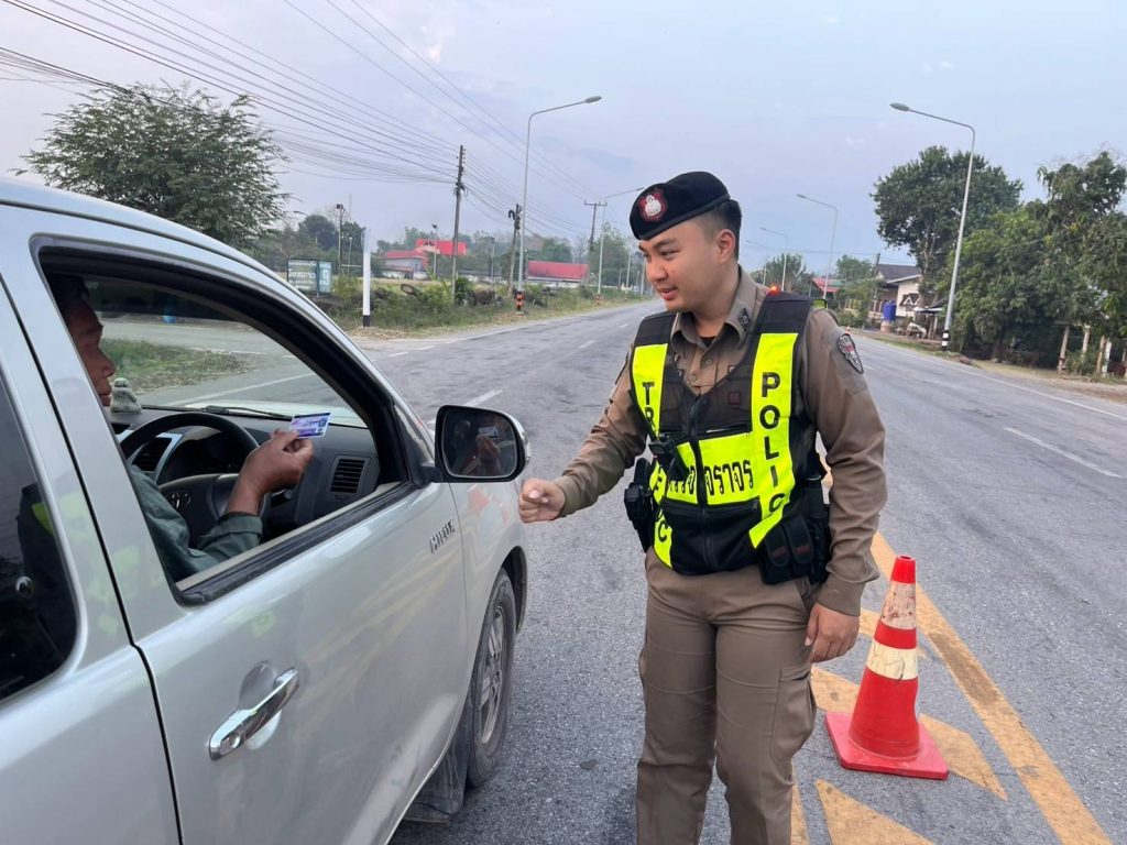 สวป.สภ.ฯ พร้อมด้วย ร้อยเวร 20 สายตรวจและจราจร ตั้งจุดตรวจกวดขันวินัยจราจร 10 ข้อหาหลัก/ตรวจวัดแอลกอฮอล์ในเขตพื้นที่รับผิดชอบ เพื่อป้องกันอุบัติเหตุทางถนน