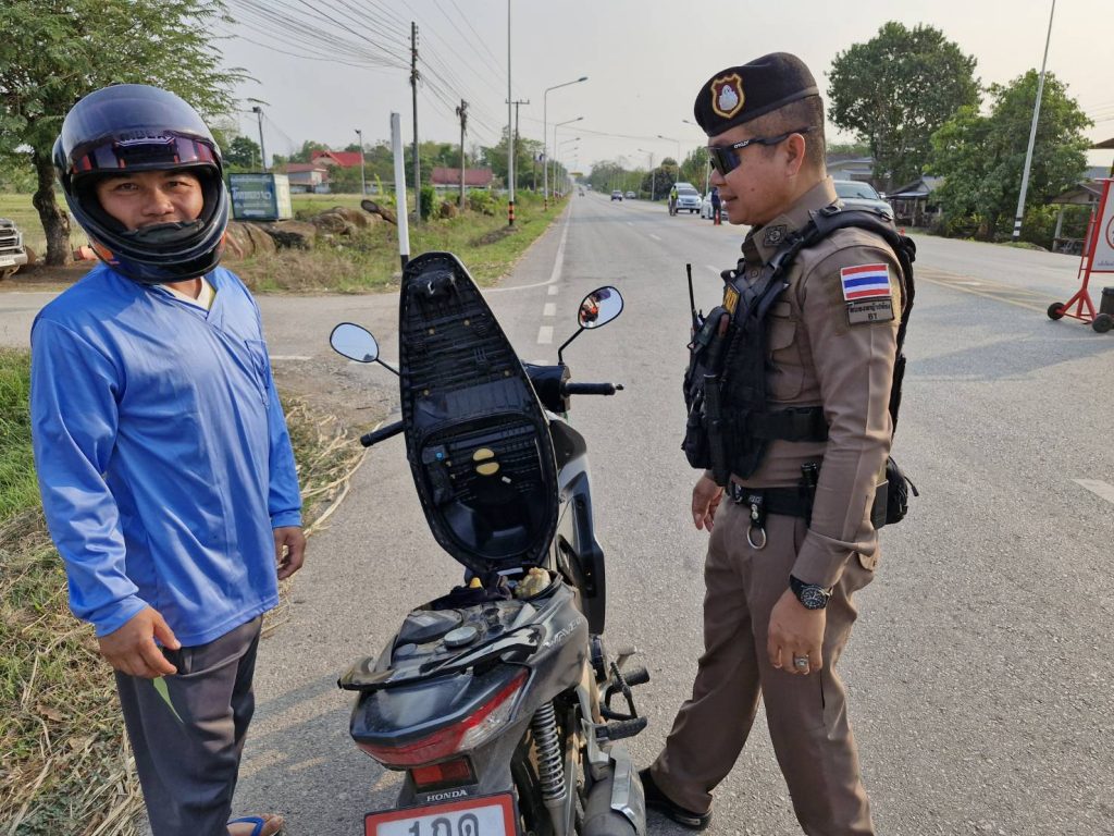 สวป.สภ.ฯ พร้อมด้วย ร้อยเวร 20 สายตรวจและจราจร ตั้งจุดตรวจกวดขันวินัยจราจร 10 ข้อหาหลัก/ตรวจวัดแอลกอฮอล์ในเขตพื้นที่รับผิดชอบ เพื่อป้องกันอุบัติเหตุทางถนน