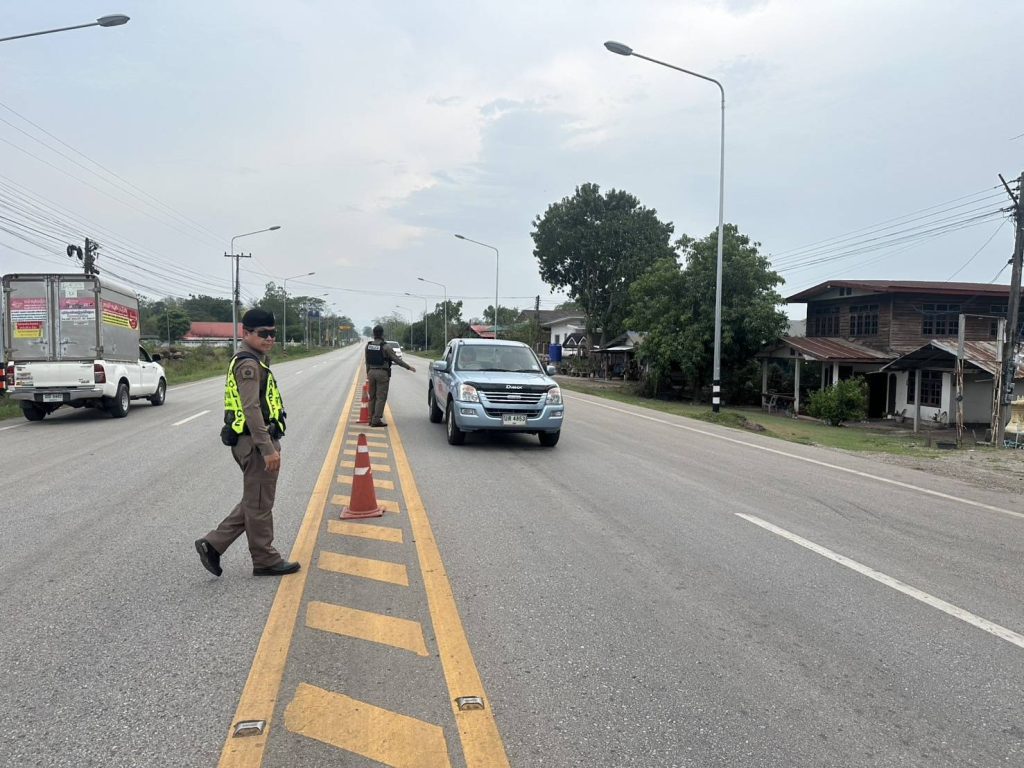 สวป.สภ.ฯ พร้อมด้วย ร้อยเวร 20 สายตรวจและจราจร ตั้งจุดตรวจกวดขันวินัยจราจร 10 ข้อหาหลัก/ตรวจวัดแอลกอฮอล์ในเขตพื้นที่รับผิดชอบ เพื่อป้องกันอุบัติเหตุทางถนน
