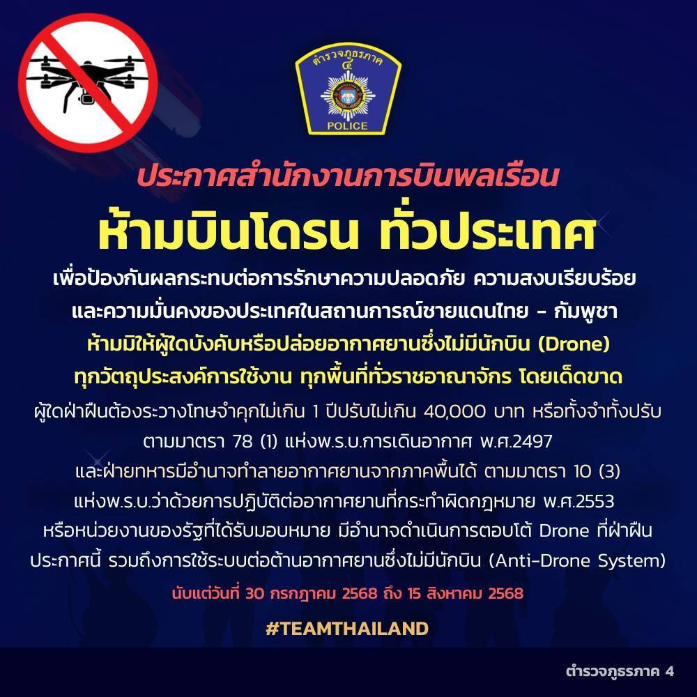 CAAT ออกประกาศ #ห้ามบินโดรนทั่วราชอาณาจักร ไม่ว่าด้วยวัตถุประสงค์ใด ด้วยเหตุผลของความมั่นคง ตั้งแต่ว