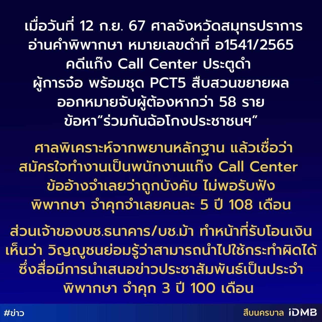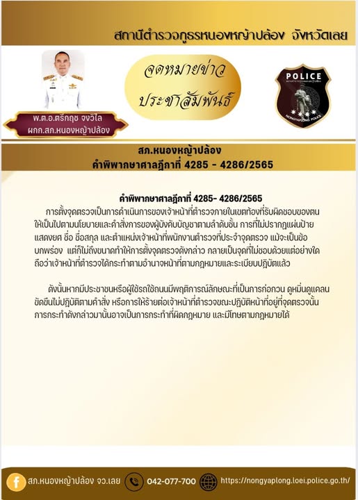 สถานีตำรวจภูธรหนองหญ้าปล้อง จว.เลย ประชาสัมพันธ์แก็งคอลเซ็นเตอร์ ศาลจังหวัดสมุทรปราการอ่านคำพิพากษา