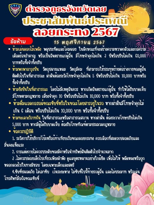 ข้อห้ามในช่วงเทศกาลลอยกระทงประจำปี 2567