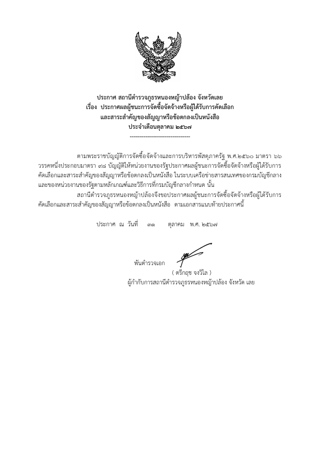 ประกาศจัดซื้อจัดจ้างประจำเดือน ตุลาคม 2567