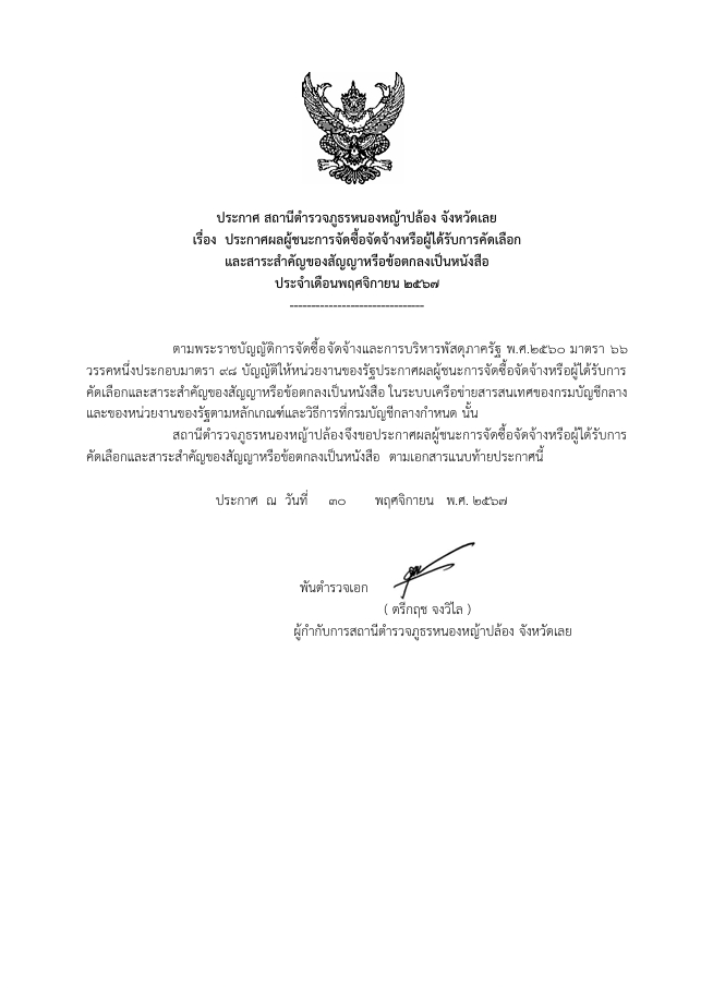 ประกาศจัดซื้อจัดจ้างประจำเดือน พฤศจิกายน 2567