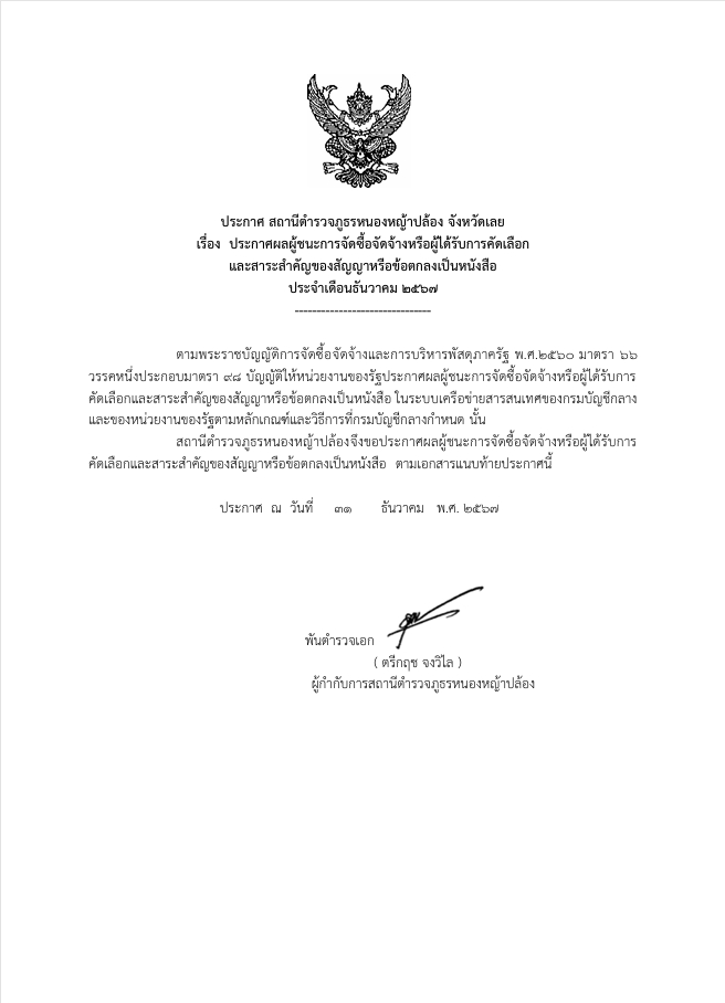 ประกาศจัดซื้อจัดจ้างประจำเดือน ธันวาคม 2567
