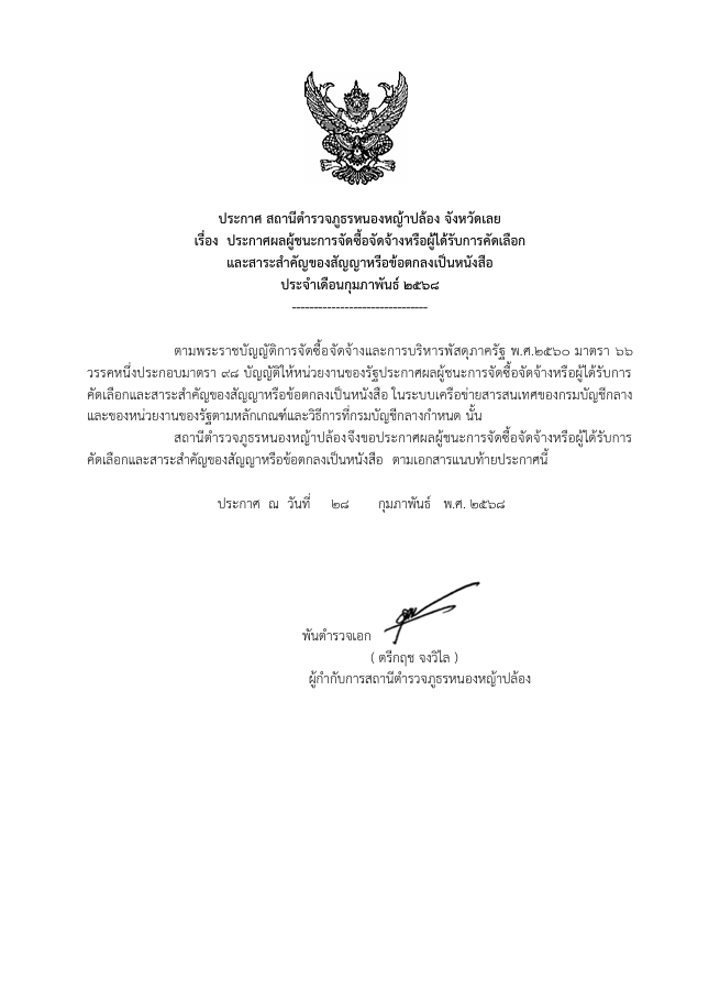 ประกาศจัดซื้อจัดจ้างประจำเดือน มกราคม 2568
