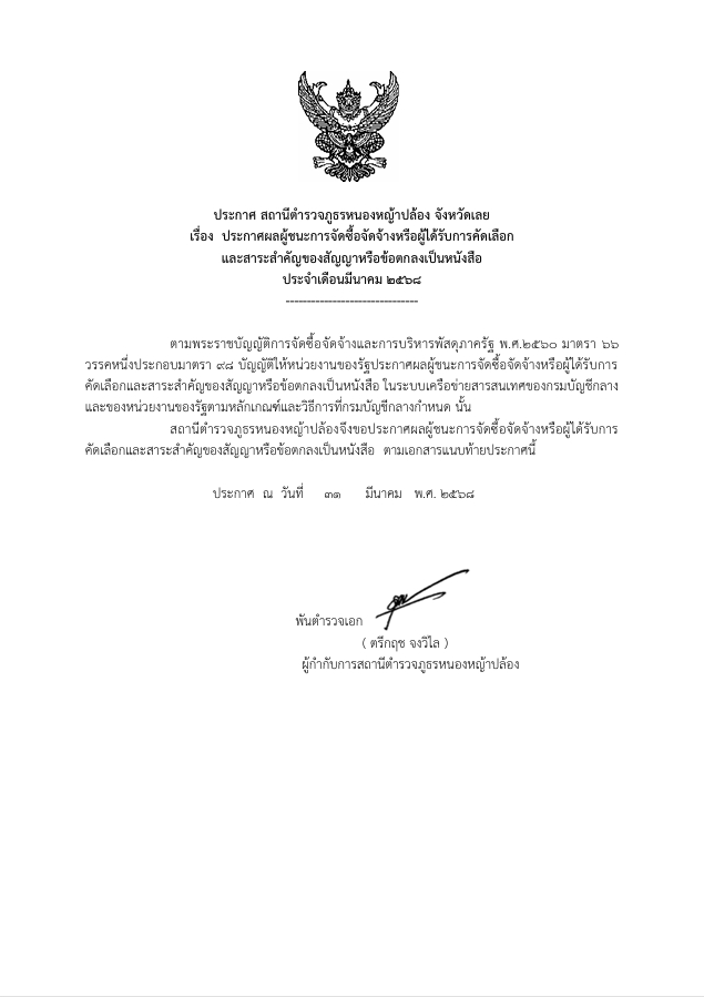 ประกาศจัดซื้อจัดจ้างประจำเดือน มีนาคม 2568